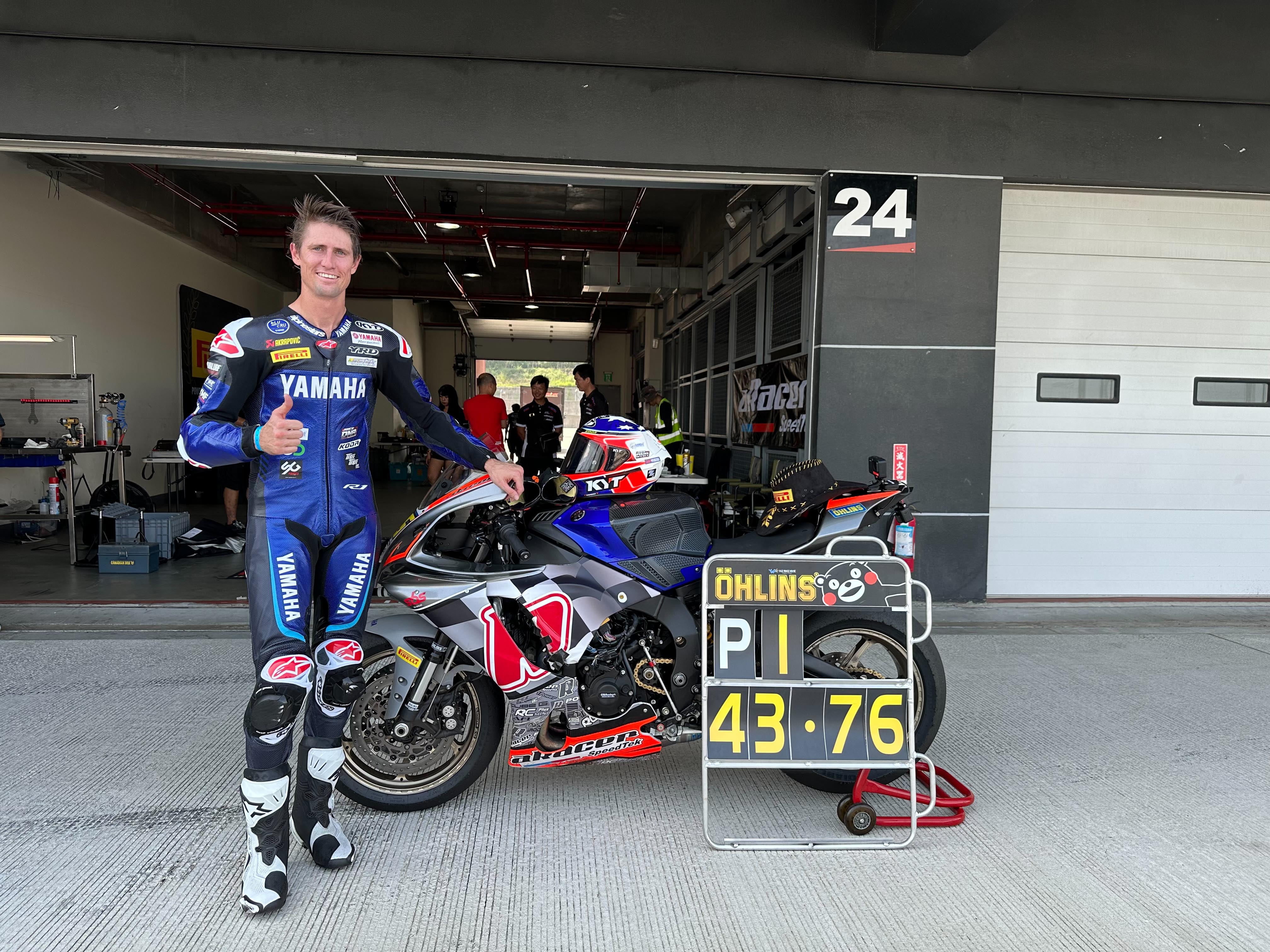 Today (5/26) Mike Jones came to Lihpao International Circuit to challenge the fastest record of 1:45.428 set by Kenny Foray, the current annual champion of the French FSBK Superbike Championship. Mike Jones was riding this time by aRacer provided and installed the YAMAHA YZF-R1 that replaced the computer with RC Super X, and also assisted in the preparation and adjustment of the vehicle by peripheral manufacturers such as Taishan Ohlins, Craftsman Moto Second Wheel Trading Company, PIRELLI bald racing tires; Mike Jones finally succeeded With a time of 1:43.768, it broke the fastest lap record of Lihpao International Circuit.