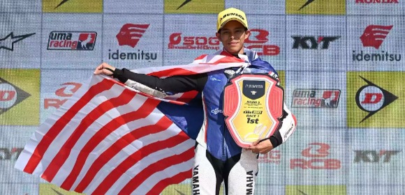 Taking the second spot on the podium was Ahmad Fazrul Sham of Pitsbike JRT Tech 2 OneWay Racing Team at 12’08:735s.