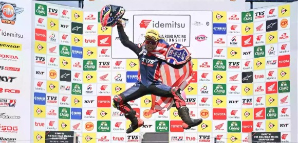 The Asia Production 250cc has always had a fascinating spin with vivacious and highly dominant riders working their moves for a taste of victory. Today, at the finale of the Idemitsu FIM Asia Road Racing Championship, Jakkreephat Pueetisan not only immersed himself in the celebratory moment but also presented his team Honda Racing Thailand, an unforgettable memory at home-ground in Race 2 of Round 6 at Chang International Circuit.
