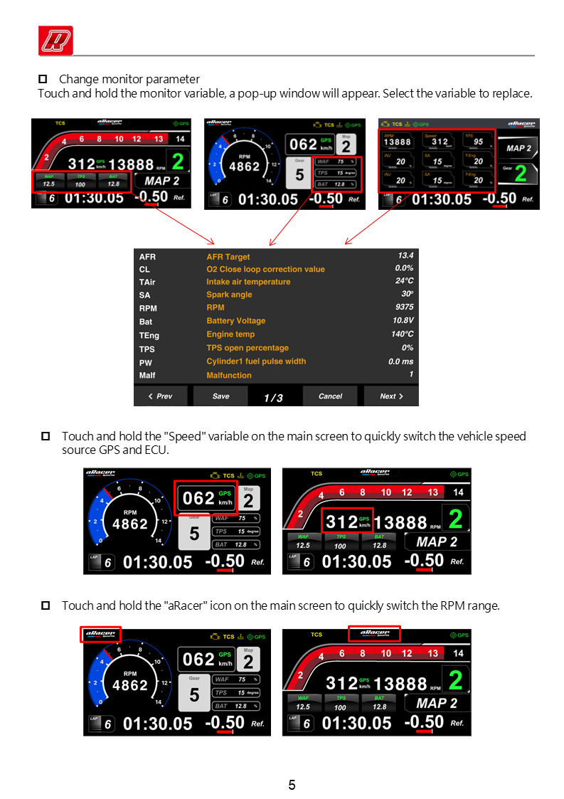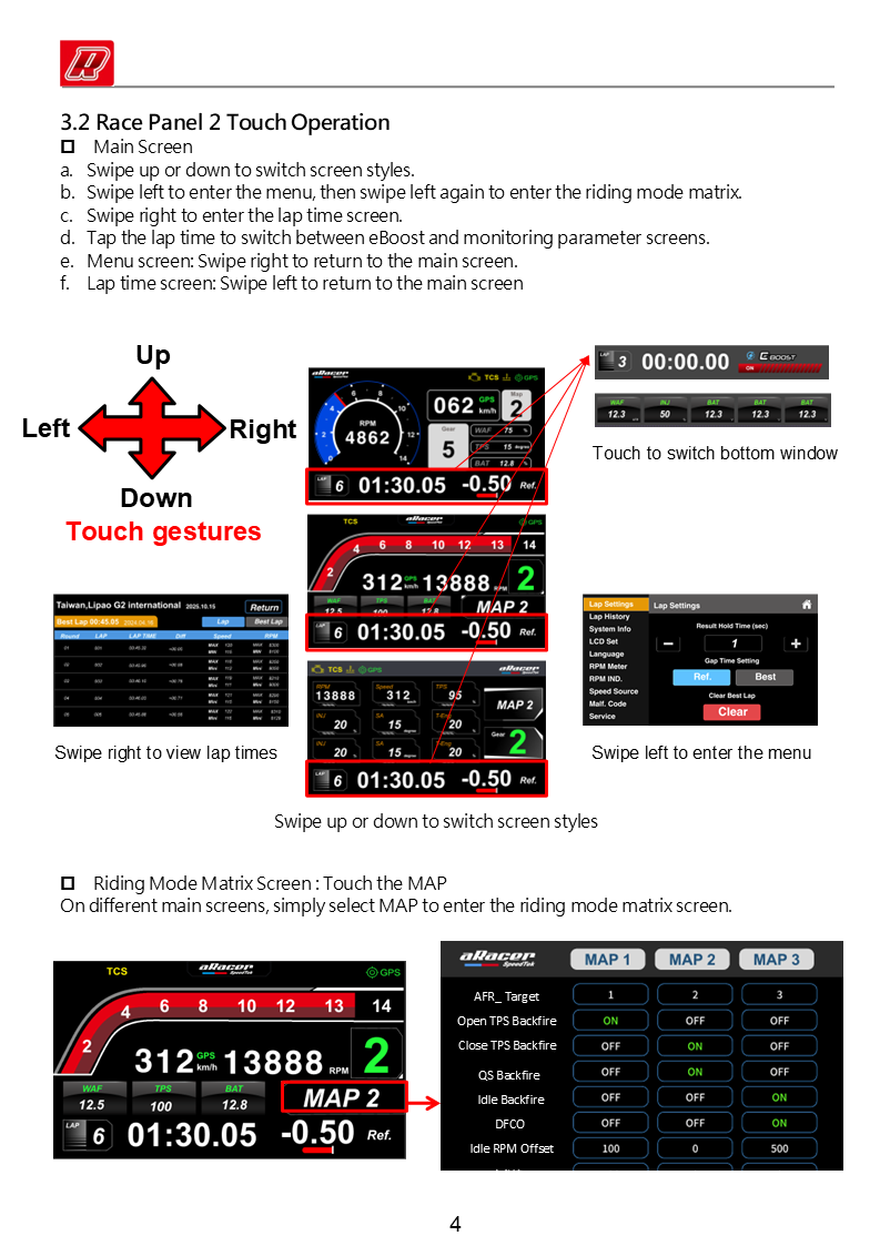 Real-time vehicle mode display: Launch Mode, PIT Speed Limit Mode, Power Mode (MAP)