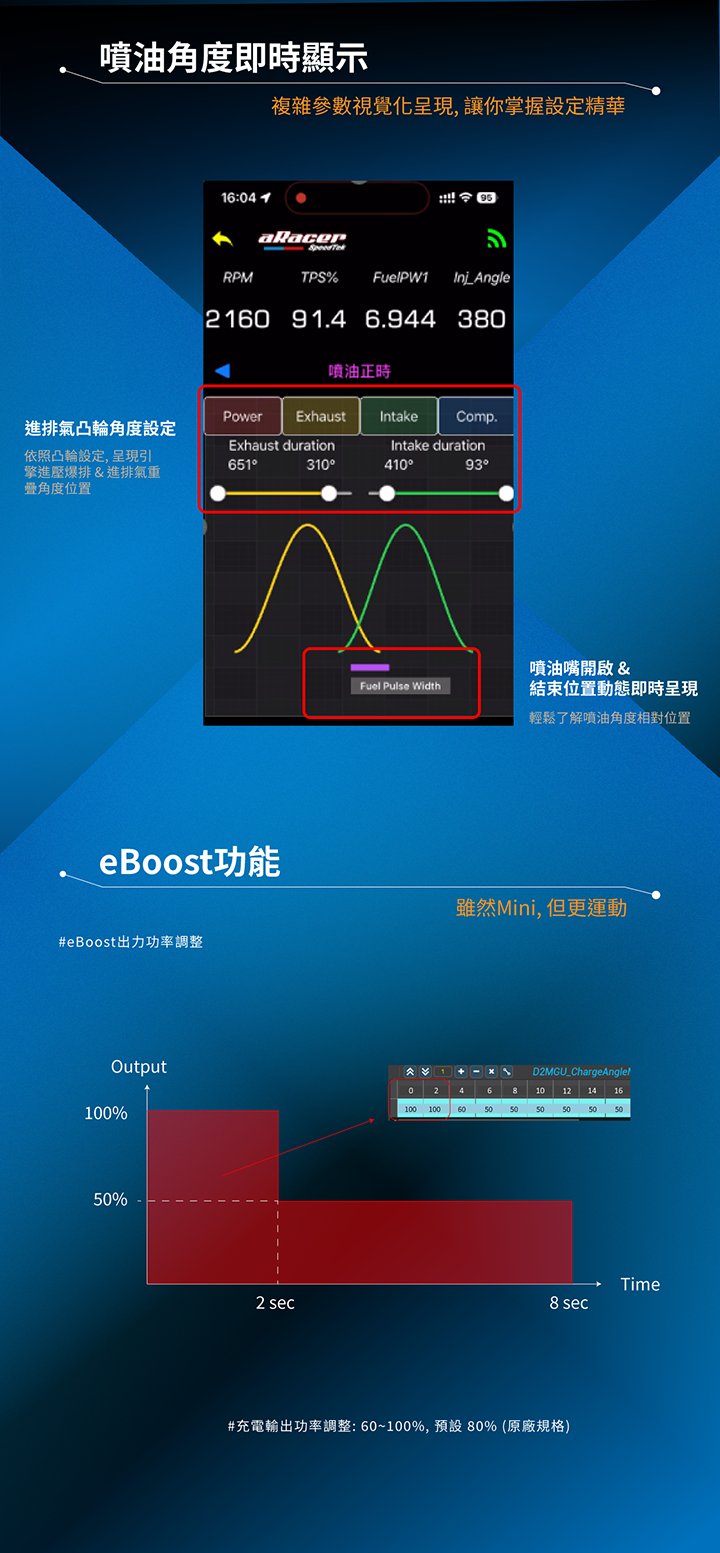 eBoost輸出功率 & 時間設定 / 充電功率設定eBoost模式切換