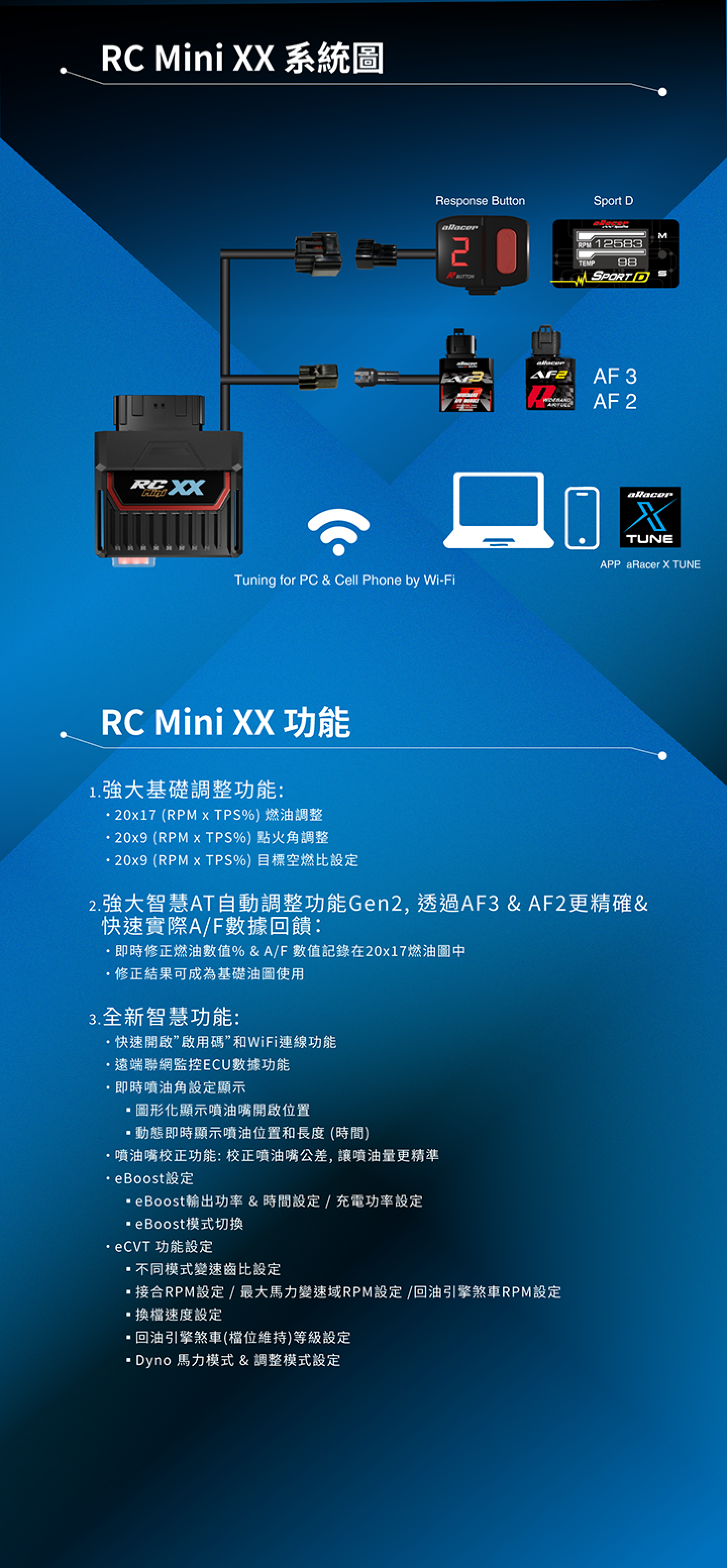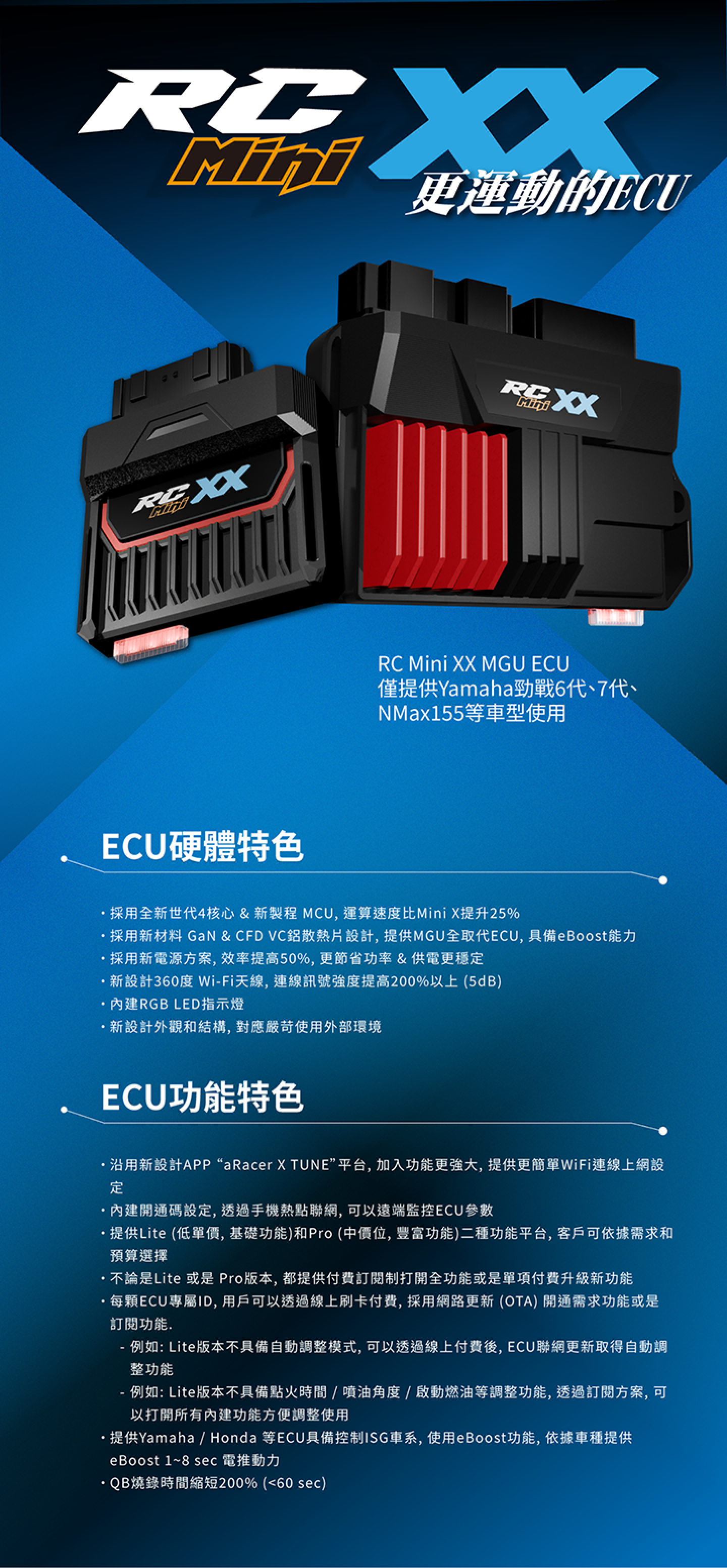 •沿用新設計APP “aRacer X TUNE”平台, 加入功能更強大, 提供更簡單WiFi連線上網設定