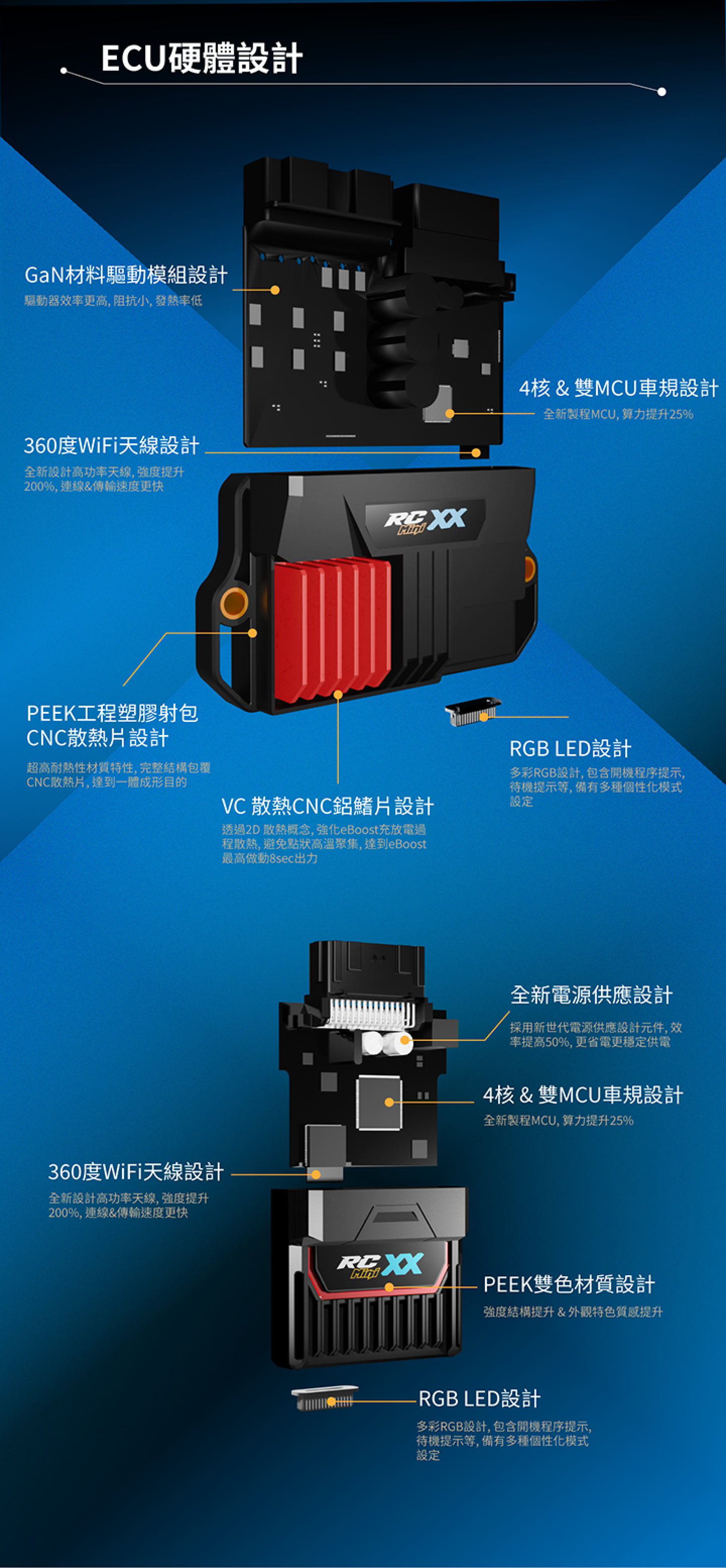 •採用新材料 GaN & CFD VC鋁散熱片設計, 提供MGU全取代ECU, 具備eBoost能力