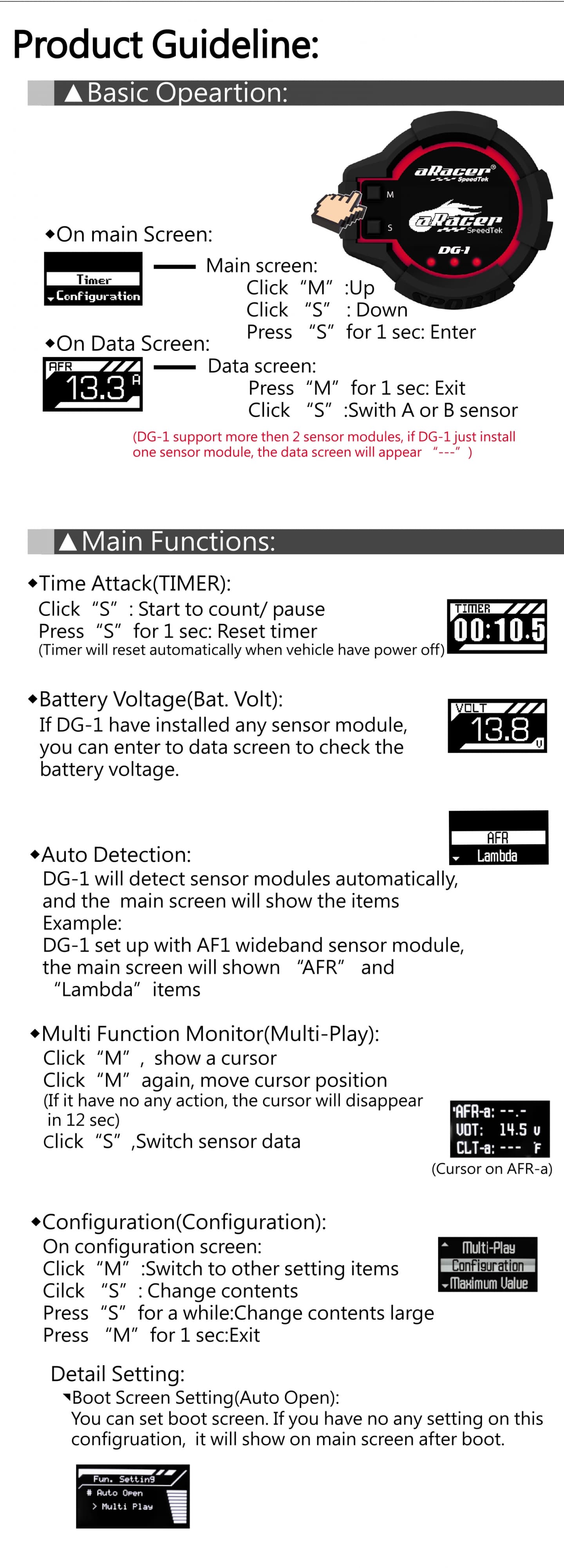 - It can be shown wideband AFR, battery voltage and timer function with AF1